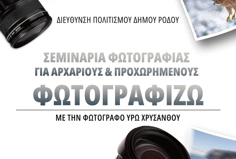 Η Διεύθυνση Πολιτισμού του Δήμου Ρόδου διοργανώνει Εργαστήρια Φωτογραφίας με εισηγήτρια την πτυχιούχο φωτογράφο Αργυρώ Χρυσάνθου. Η φωτογραφία θεωρείται ένα θεραπευτικό “κλικ” ...
