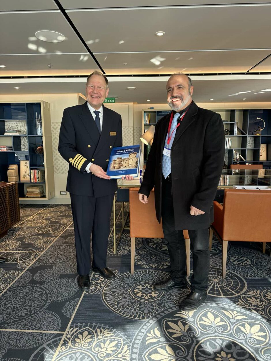 Ο Δήμος Ρόδου πραγματοποίησε την καθιερωμένη επίσημη υποδοχή στον κυβερνήτη, τους αξιωματικούς, το πλήρωμα και φυσικά στους επιβάτες. Παραβρέθηκαν ο πρόεδρος του Δημοτικού Λιμενικού Ταμείου Νότιας Δωδεκανήσου Βασίλης Βαγιανάκης, ο αντιδήμαρχος Επικοινωνίας Γιώργος Πάττας, ο διευθύνων σύμβουλος του Οργανισμού Προώθησης Ροδιακού Τουρισμού (ΠΡΟΤΟΥΡ) Αναστάσιος Κωνσταντάρος, η διευθύντρια Τεχνικών Έργων του ΔΛΤ Μαρίκα Δεληγιάννη, η προϊσταμένη του Τμήματος Δημοσίων και Διεθνών Σχέσεων του Δήμου Ρόδου Μαρία-Αγάπη Καραμπίνη, καθώς επίσης ο προϊστάμενος προβολής προώθησης και πληροφόρησης της Διεύθυνσης Τουρισμού Βλάσης Φακιόλης.