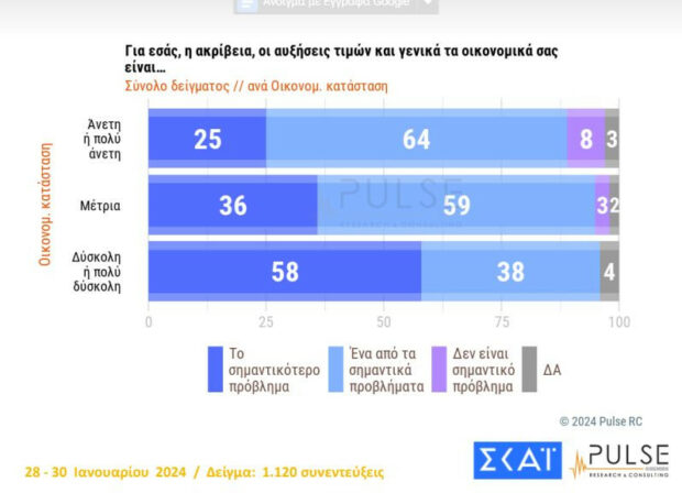 Σταθερή παραμένει η πρόθεση ψήφου, σύμφωνα με πρόσφατη δημοσκόπηση, με τη Νέα Δημοκρατία να διατηρεί ανετο προβάδισμα παρότι η ακρίβεια αποτελεί πρόβλημα για το 93% των πολιτών. Διχάζουν τα ομόφυλα ζευγάρια. Στήριξη των πολιτών στους αγρότες.