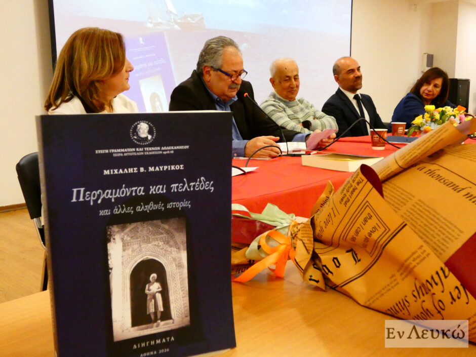 Σε μια εκδήλωση που ξεπέρασε κάθε προσδοκία, πραγματοποιήθηκε στη Ρόδο η παρουσίαση του βιβλίου του Μιχάλη Β. Μαυρίκου, «Περγαμόντα και Πελτέδες και άλλες αληθινές ιστορίες».