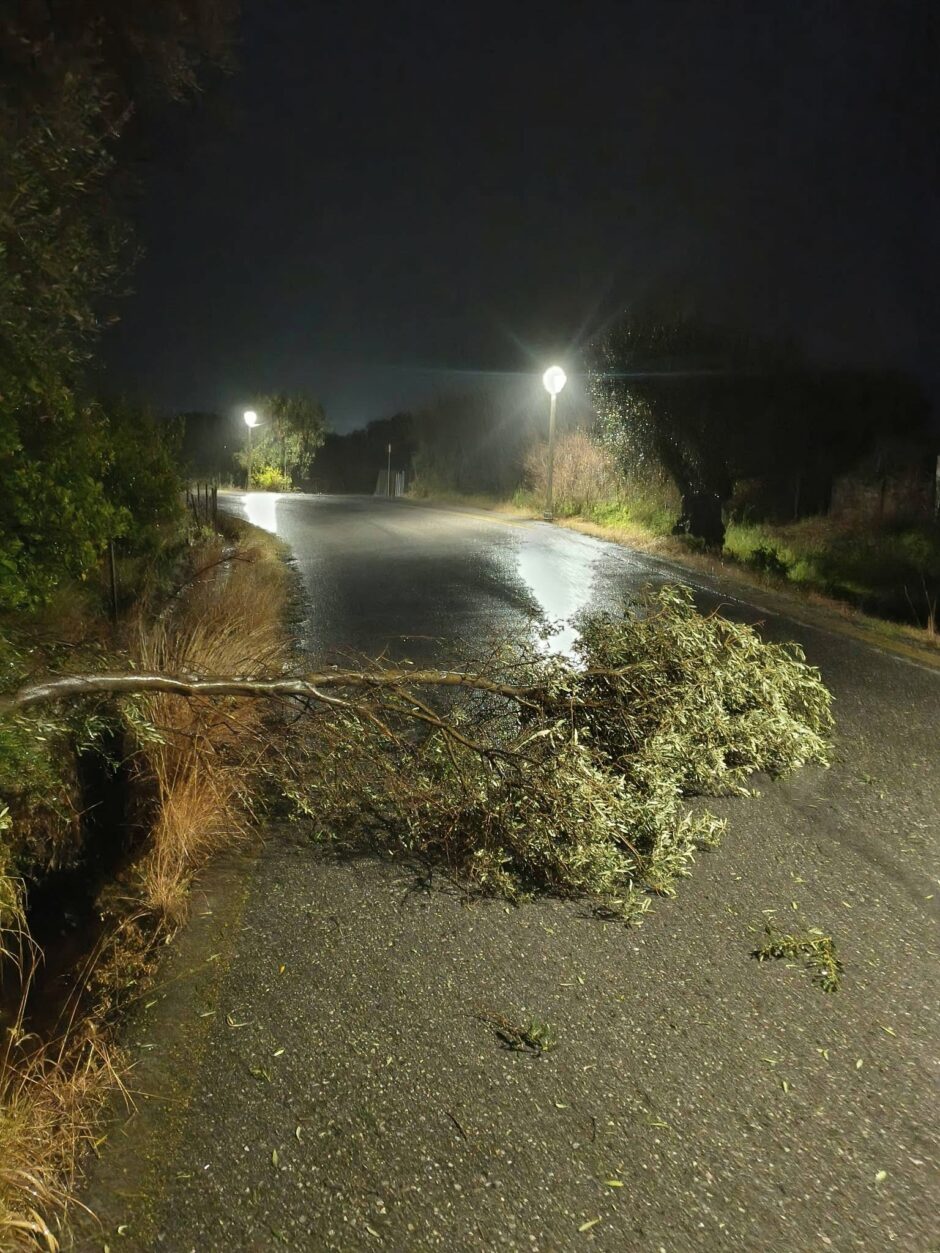 Κολώνες όπως και πολλά σήματα του Κώδικα Οδικής Κυκλοφορίας ξεριζώθηκαν και έπεσαν στους δρόμους. Επίσης κόπηκαν δέντρα και πολλά κλαδιά. Ο δυνατός άνεμος παρέσυρε και από κατοικίες όσα αντικείμενα δεν ήταν καλά στερεωμένα. Μέχρι και καρέκλες από βεράντες απογειώθηκαν και βρέθηκαν στους δρόμους.  Κάποια ποτάμια ξεχείλισαν εξαιτίας της δυνατής βροχής που έπεφτε από το απόγευμα.. Ωστόσο οι εθελοντικές ομάδες ήταν σε επιφυλακή και αντιμετώπισαν τα προβλήματα προκειμένου να μην απειληθούν περιουσίες και ανθρώπινες ζωές.
