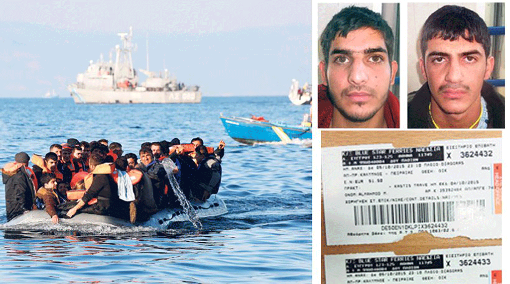 Οι δύο τζιχαντιστές αυτοκτονίας έφτασαν , μαζί με άλλους, στις 3 Οκτωβρίου στο Φαρμακονήσι,με φουσκωτό, που το βούλιαξαν για να περισυλλεγούν από το Λιμενικό ως πρόσφυγες-ναυαγοί