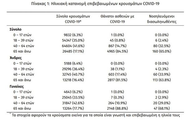 Η διάμεση ηλικία των θανόντων συμπολιτών μας ήταν τα 79 έτη και το 95.5% είχε κάποιο υποκείμενο νόσημα ή/και ηλικία 70 ετών και άνω.