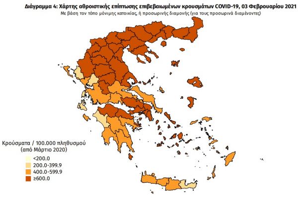 Συμπεριλαμβάνονται τόσο κρούσματα με ιστορικό ταξιδίου (“εισαγόμενα”) όσο και κρούσματα με πιθανή εγχώρια μετάδοση.
