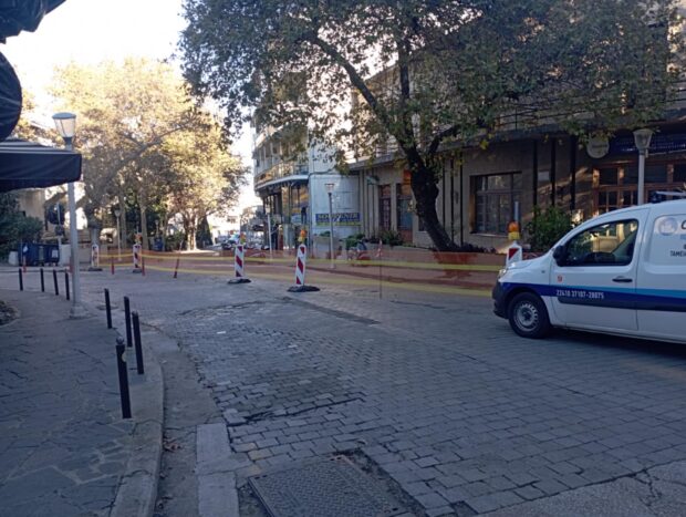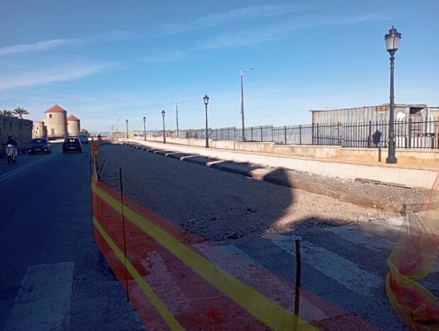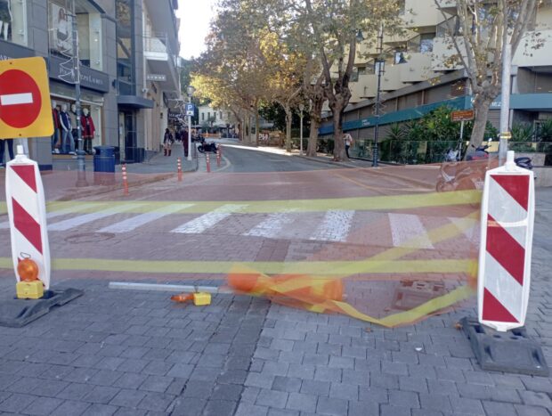Το οδόστρωμα από το λιμάνι της Ακαντιάς μέχρι την πλατεία Ελευθερίας αφηγείται την πιο άβολη ιστορία. Μπαλώματα που θυμίζουν προσωρινή λύση σε μόνιμο πρόβλημα, επιφάνειες που λιώνουν με την πρώτη πίεση, καντράν φθοράς που ανεβαίνει γρηγορότερα από κάθε χρονοδιάγραμμα.