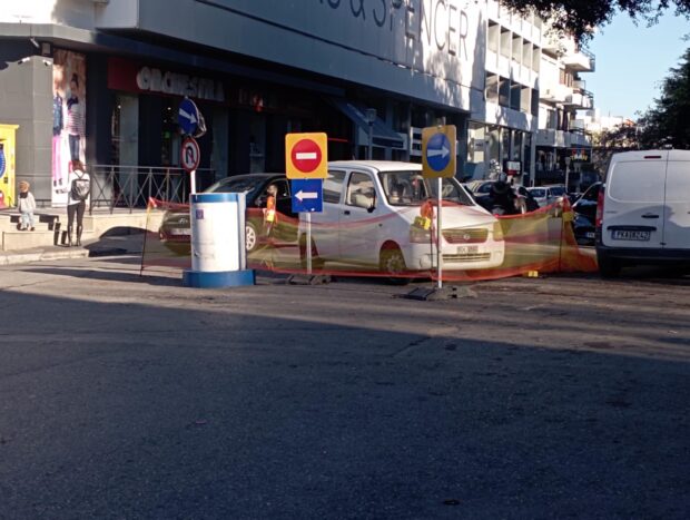Αντίστοιχη εικόνα και από το πάρκο της Δημοκρατίας προς το κέντρο. Το οδικό δίκτυο μετατρέπει μια διαδρομή ρουτίνας σε δοκιμασία αντοχής.