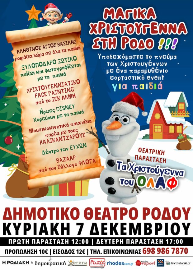 Ένα μεγάλο χριστουγεννιάτικο event για παιδιά που θα συγκινήσει μικρούς και μεγάλους έρχεται στην Ρόδο σε ΝΕΑ ΗΜΕΡΟΜΗΝΙΑ  για να φέρει από νωρίς το εορταστικό πνεύμα των Χριστουγέννων, το Σάββατο 7  Δεκεμβρίου στο Δημοτικό Θέατρο  Ρόδου για δύο μοναδικές παραστάσεις!!!!