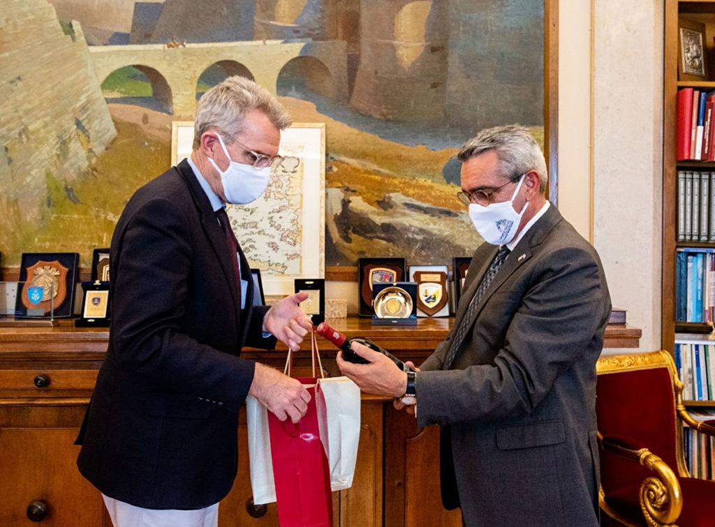 Η συνάντηση έγινε στο γραφείο του Περιφερειάρχη στο Διοικητήριο, στο περιθώριο της ημερίδας για την επιχειρηματικότητα και τις επενδυτικές ευκαιρίες στο Νότιο Αιγαίο, “Invest in South Aegean – A Sea of Opportunities”, την οποία διοργάνωσε στη Ρόδο η Περιφέρεια με τα μέλη της Παγκόσμιας Διακοινοβουλευτικής Ένωσης Ελληνισμού (ΠΑΔΕΕ), τις εργασίες της οποίας τίμησε με την παρουσία του ο Αμερικανός Πρέσβης, αποδεχόμενος την πρόσκληση του κ. Γιώργου Χατζημάρκου.