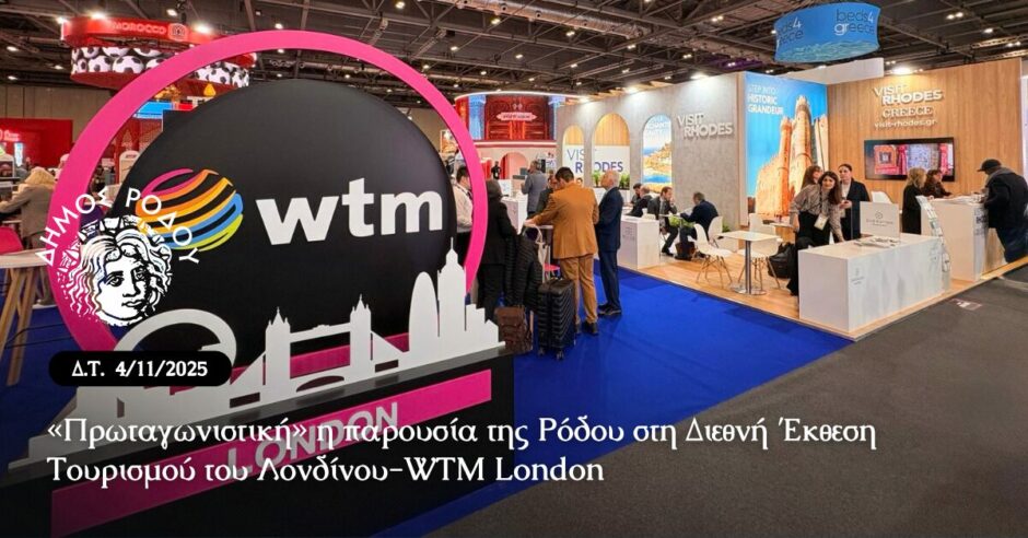 Ιδιαίτερα δυναμική είναι η παρουσία της Ρόδου στη Διεθνή Έκθεση Τουρισμού WTM του Λονδίνου, η οποία πραγματοποιείται από τις 4 έως τις 6 Νοεμβρίου. Στο σημαντικότερο «ραντεβού» της παγκόσμιας τουριστικής βιομηχανίας, ο Δήμος Ρόδου συμμετέχει με περίπτερο του Οργανισμού Προώθησης Ροδιακού Τουρισμού (ΠΡΟΤΟΥΡ), το οποίο από την πρώτη κιόλας μέρα έχει προσελκύσει το ενδιαφέρον επισκεπτών και επαγγελματιών του τουρισμού, αποτελώντας ένα σημαντικό κέντρο δικτύωσης και προβολής του νησιού.