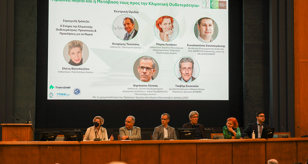 Με επιτυχία πραγματοποιήθηκε η Ημερίδα με θέμα “Πράσινα Νησιά και η Μετάβασή τους προς την Κλιματική Ουδετερότητα”, η οποία διοργανώθηκε από το Εργαστήριο Μεταφορών και Λήψης Αποφάσεων του Τμήματος Ναυτιλίας και Επιχειρηματικών Υπηρεσιών (ΤΝΕΥ) και το Εργαστήριο Τουριστικών Μεταφορών, Υποδομών και Ανάπτυξης Προορισμών του Τμήματος Οικονομικής και Διοίκησης Τουρισμού (ΤΟΔΙΤ), του Πανεπιστημίου Αιγαίου.
