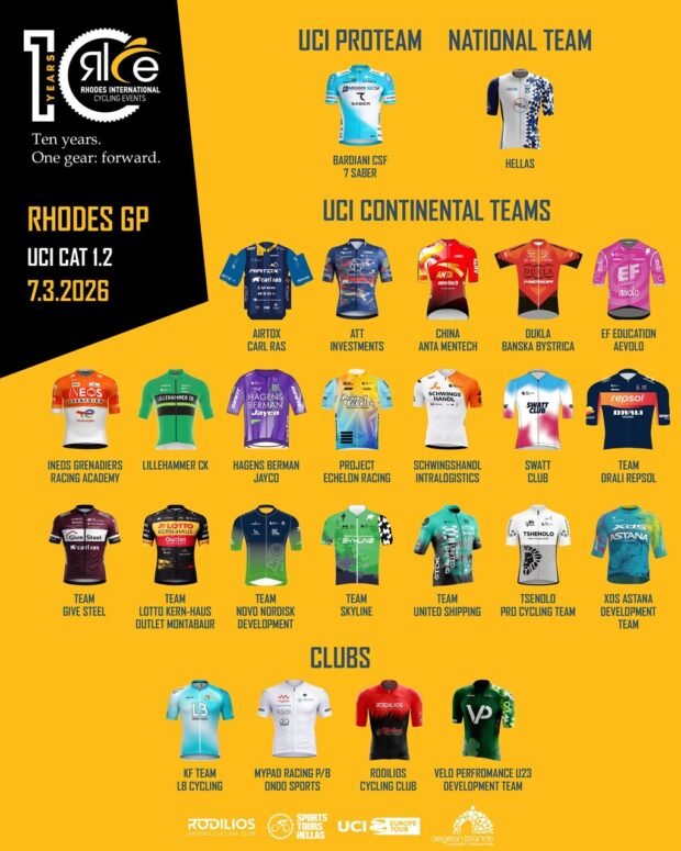 «Το ‘’Rhodes GP’’ — ο αγώνας από τον οποίο ξεκίνησαν μία ημέρα σαν σήμερα το 2017 τα International Cycling Events in Rhodes — επιστρέφει αυτό το Σάββατο 7 Μαρτίου με τη συμμετοχή 25 κορυφαίων ομάδων από όλο τον κόσμο.