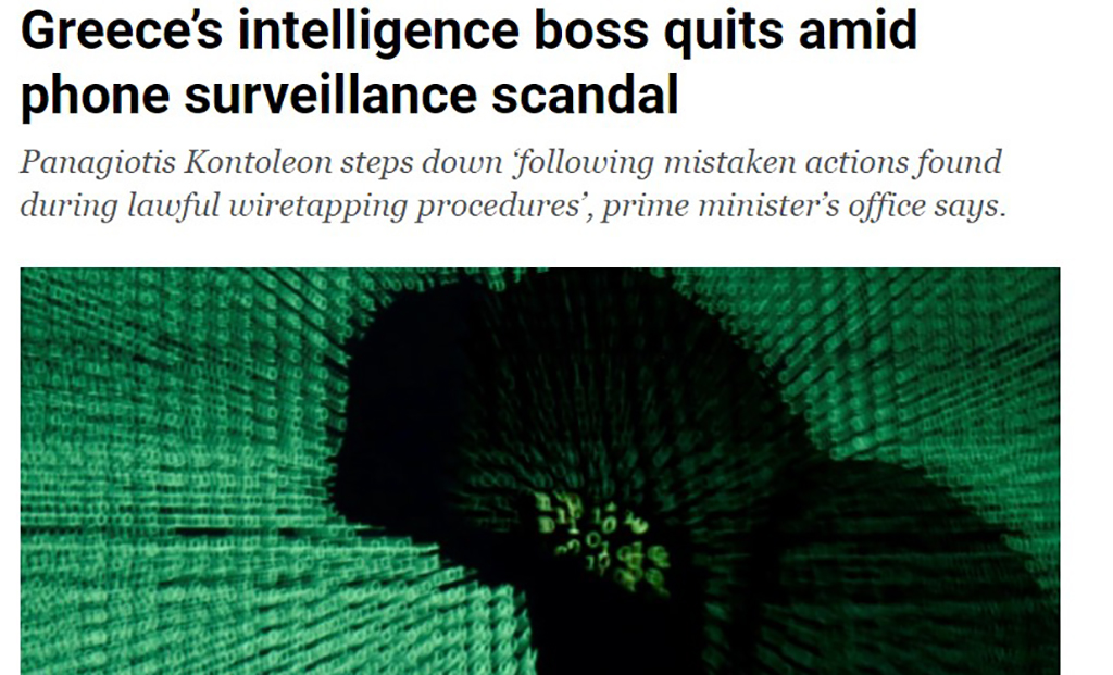 Σύμφωνα με το συγκεκριμένο ρεπορτάζ, οι καταγγελίες του δημοσιογράφου Θανάση Κουκάκη και του αρχηγού του ΠΑΣΟΚ Νίκου Ανδρουλάκη ότι στα κινητά τους είχαν εγκαταστήσει spyware οδήγησαν στην παραίτηση της Ελληνικής Υπηρεσίας Πληροφοριών (ΕΥΠ).