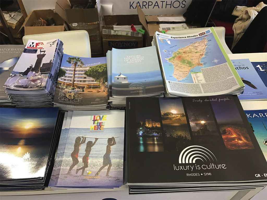 Τα αντίτυπα αποστέλλονται στις διεθνείς τουριστικές εκθέσεις και διανέμονται δωρεάν από το περίπτερο του Δήμου Ροδίων. Προς την κατεύθυνση αυτή είναι σημαντική η υποστήριξη των στελεχών του γραφείου Τουρισμού Ρόδου, τα οποία αγόγγυστα μεταφέρουν τα μεγάλου βάρους κιβώτια, τακτοποιούν τα βιβλία και φροντίζουν ώστε να δοθούν προς τους επισκέπτες. Αντίτυπα βρίσκονται επίσης σε όλα τα δωμάτια των συνεργαζόμενων boutique καταλυμάτων και προσφέρονται προς τους επισκέπτες υψηλής εισοδηματικής στάθμης. Με τον τρόπο αυτό δημιουργείται μια αλυσίδα προβολής, ο ένας «μικροξενοδόχος» κερδίζει από τον άλλο και συνολικά ωφελείται ο προορισμός. Επιπρόσθετα, οι μικροί παραγωγοί έχουν τη δυνατότητα να προβάλουν το αποτέλεσμα της δουλειάς τους απευθείας σ’ ένα κοινό εξαιρετικά απαιτητικό, αλλά και αποδοτικό.