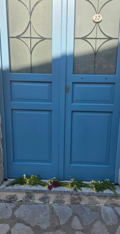 Μετά το αφιέρωμα, τα μικρά παιδιά της Ψερίμου, συνοδευόμενα από τη δασκάλα τους Αθηνά Σχοινά, τη νηπιαγωγό Μαρία Τζαβιταρόγλου, τους γονείς τους και τους λιγοστούς κατοίκους του νησιού, κατευθύνθηκαν στον χώρο όπου διέμενε ο Γιάννης Χαλίκος όταν επισκεπτόταν την αγαπημένη του Ψέριμο. Εκεί εναπόθεσαν λίγα λουλούδια στη μνήμη του, αναφωνώντας “καλο ταξίδι” σε μια σεμνή αλλά ιδιαίτερα φορτισμένη συναισθηματικά στιγμή.