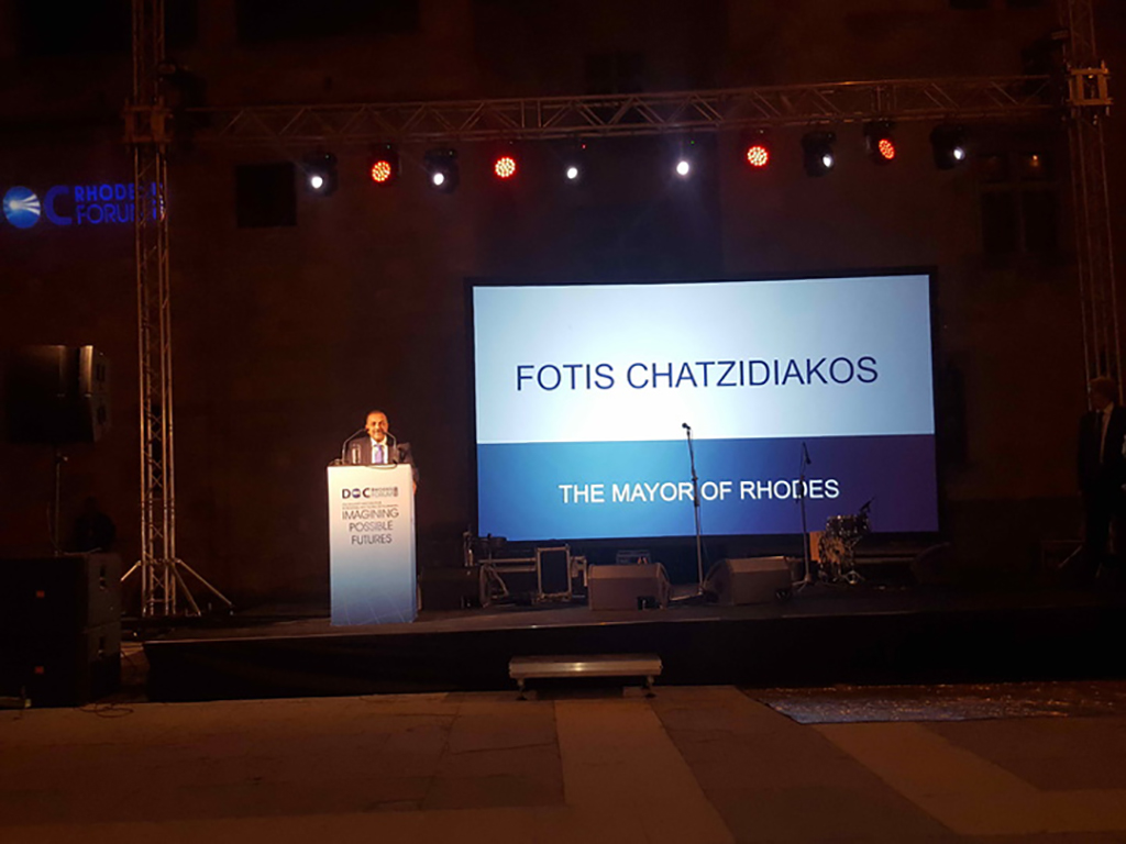Κατά την ομιλία του με θέμα «Η Ρόδος, σταυροδρόμι διαλόγου, ειρήνης, ασφάλειας και σταθερότητας.» ο Δήμαρχος Ρόδου Φώτης Χατζηδιάκος ανέφερε: