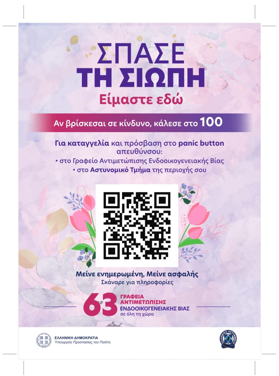 Με αφορμή την Παγκόσμια Ημέρα της Γυναίκας, το υπουργείο Προστασίας του Πολίτη και το Αρχηγείο της Ελληνικής Αστυνομίας υλοποιούν πανελλαδική εκστρατεία ενημέρωσης και ευαισθητοποίησης των πολιτών για την πρόληψη και αντιμετώπιση της ενδοοικογενειακής βίας, η οποία θα διαρκέσει έως το τέλος του μήνα.
