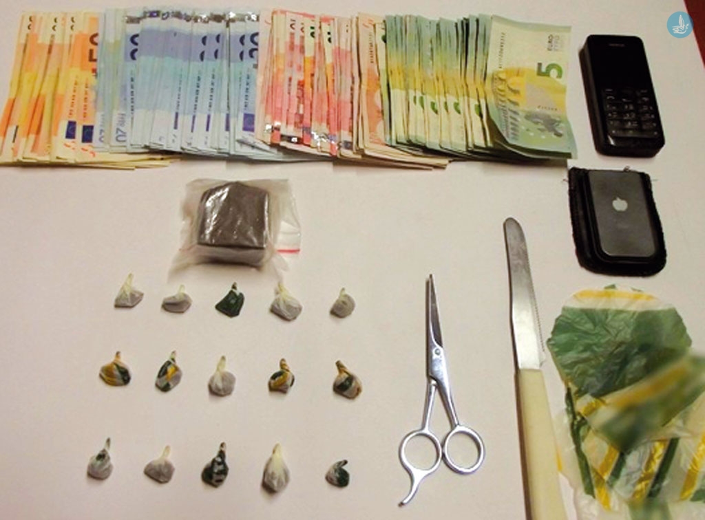 Συγκεκριμένα βρέθηκαν κατασχέθηκαν 177,7 γραμμάρια κοκαΐνης σε 45 πλαστικές συσκευασίες, 2 κινητά τηλέφωνα και 4.035 ευρώ.