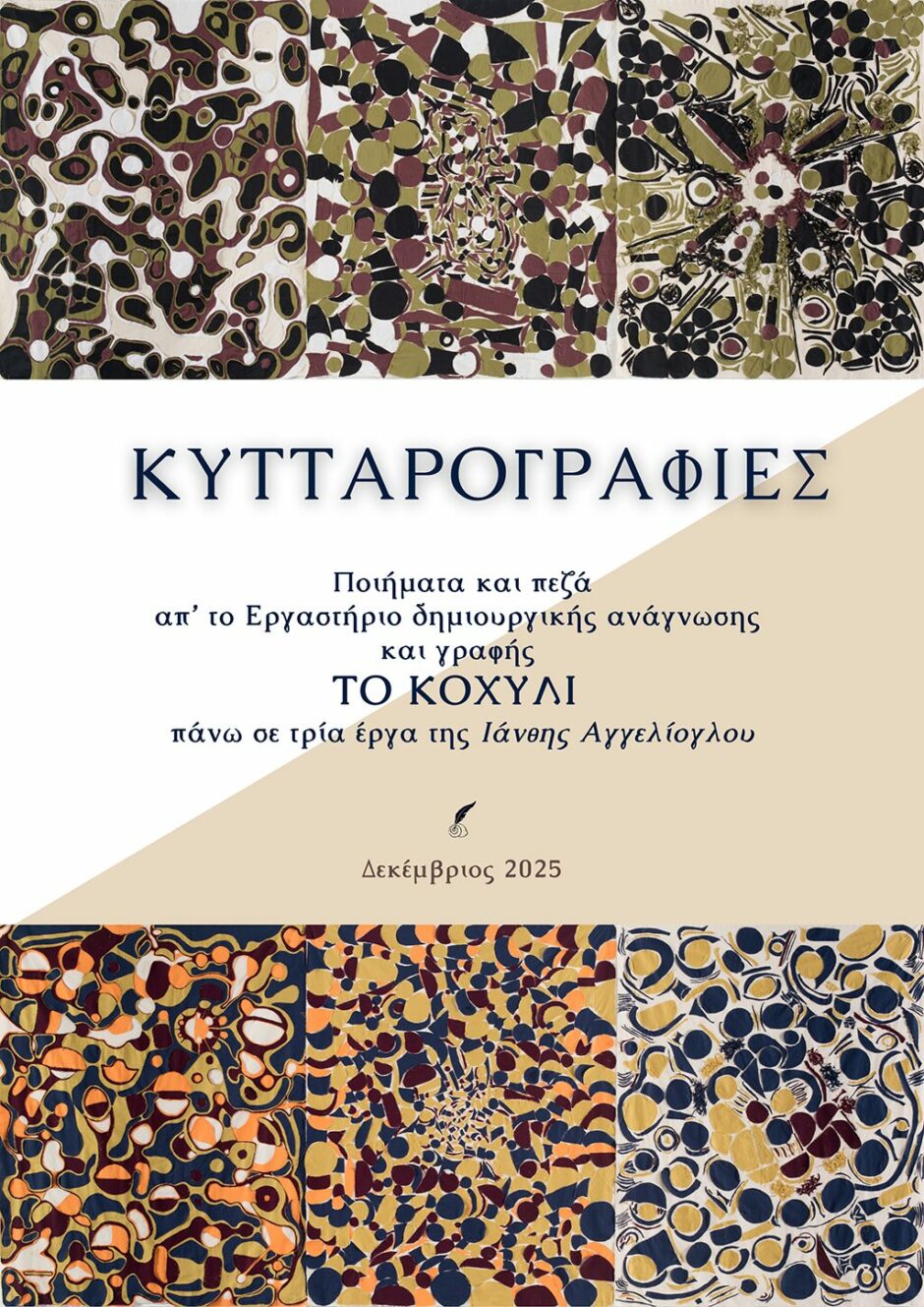Η νέα συλλογική έκδοση Κυτταρογραφίες συγκεντρώνει έντεκα λογοτεχνικά κείμενα – ποιήματα και σύντομα πεζά – που γράφτηκαν από τα μέλη του Εργαστηρίου Δημιουργικής Ανάγνωσης και Γραφής ΤΟ ΚΟΧΥΛΙ, με αφορμή τρία εικαστικά έργα της Ιάνθης Αγγελίογλου από τη σειρά Αναζήτηση Θησαυρών.