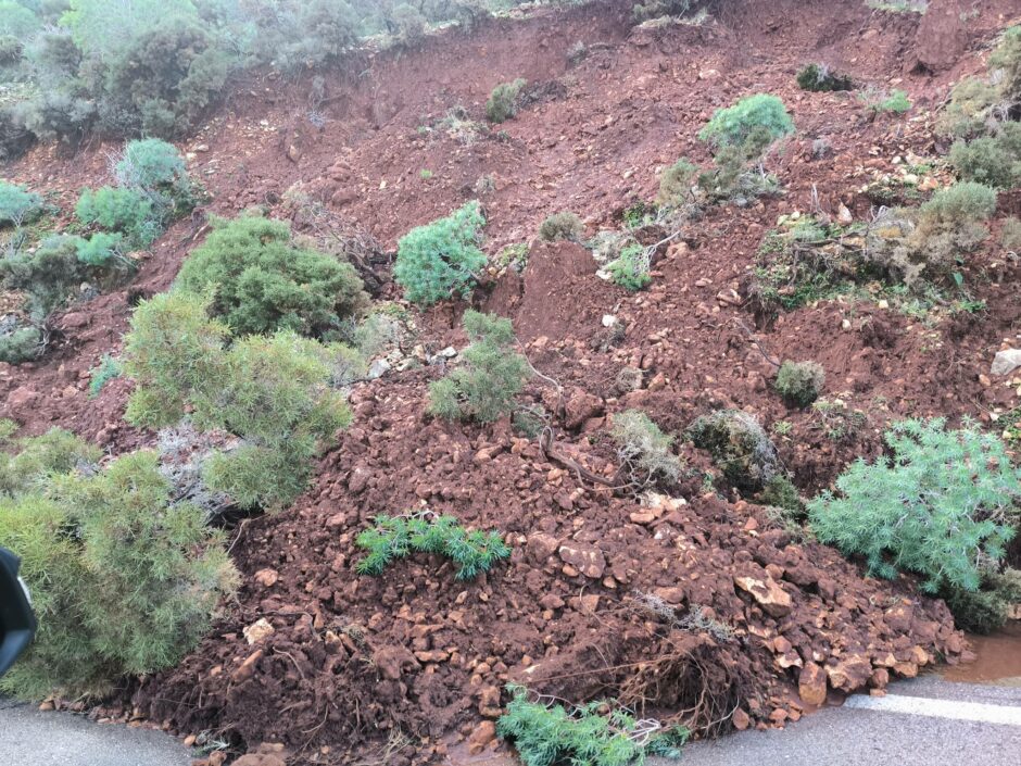 Αξίζει να σημειωθεί ότι σημαντικές καταστροφές έχουν εντοπιστεί σε πλακόστρωτους δρόμους ιδίως στην περιοχή Αγίας Τριάδας, ενώ σημειώθηκαν κατολισθήσεις κατά μήκος της οδού προς το αεροδρόμιο. Φερτά υλικά, πέτρες, κλαδιά δέντρων, μπάζα κλπ παρασύρθηκαν σε όλο το νησί, προκαλώντας τις ζημιές.