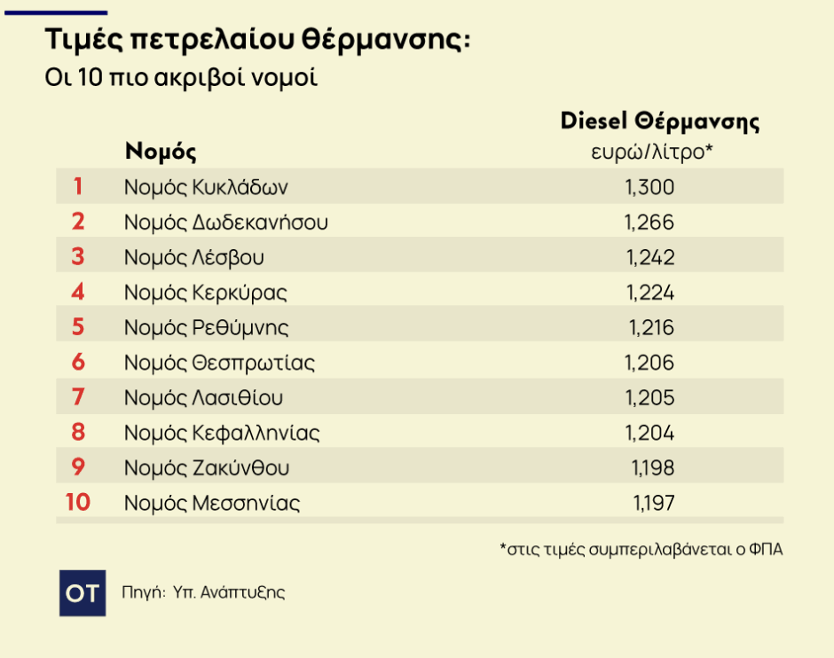 Πετρέλαιο θέρμανσης: «Τσίμπησε» η τιμή του – Tα Δωδεκάνησα στους 10 πιο ακριβούς νομούς