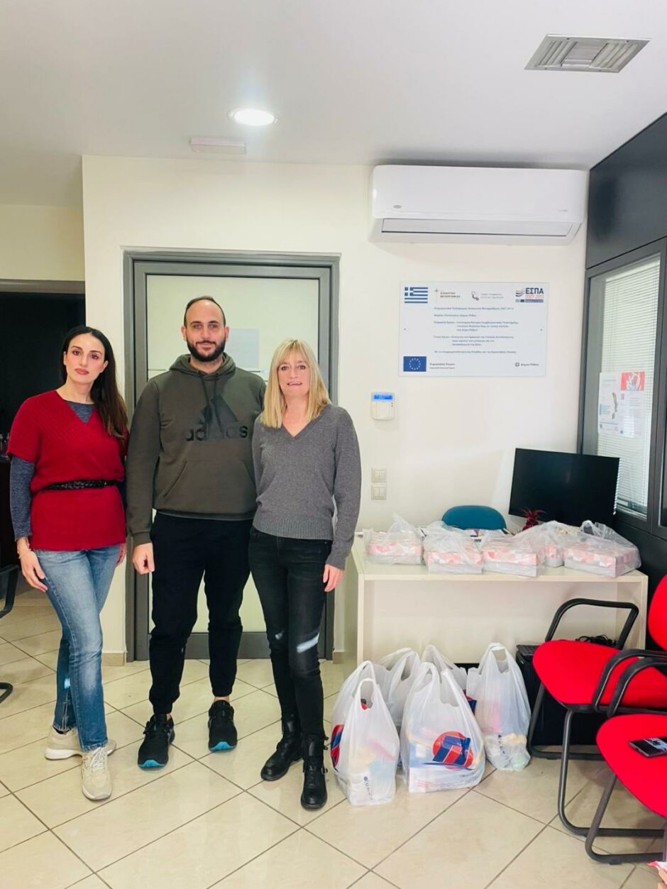 Η υλοποίηση της δράσης δεν θα ήταν δυνατή χωρίς την πολύτιμη υποστήριξη των επιχειρηματιών του νησιού μας: του Εμμανουήλ Παναγιωτά (Super Market Παναγιωτάς Βασίλειος Α.Ε.), του Μιχάλη και του Δημήτρη Τσισιμοίρη (Super Market Τσισιμοίρης) και της Φωτεινής Σπανού (Super Market Κρητικός), οι οποίοι προσέφεραν με προθυμία είδη προσωπικής υγιεινής και τρόφιμα. Θερμές ευχαριστίες απευθύνονται επίσης στη Μαίρη και τον Αντώνη Καμπουράκη (Mediterranean Hotel) και στη Ντίνα Τσαλμίδη (Ζαχαροπλαστεία Tsalmidis) για την άμεση ανταπόκρισή τους στο αίτημά του Ομίλου και την προσφορά μελομακάρονων και κουραμπιέδων. Ιδιαίτερη μνεία αξίζει στον επιχειρηματία Πάρη Τοδουλάκη, η συμβολή του οποίου υπήρξε καταλυτική για την ολοκλήρωση της δράσης.
