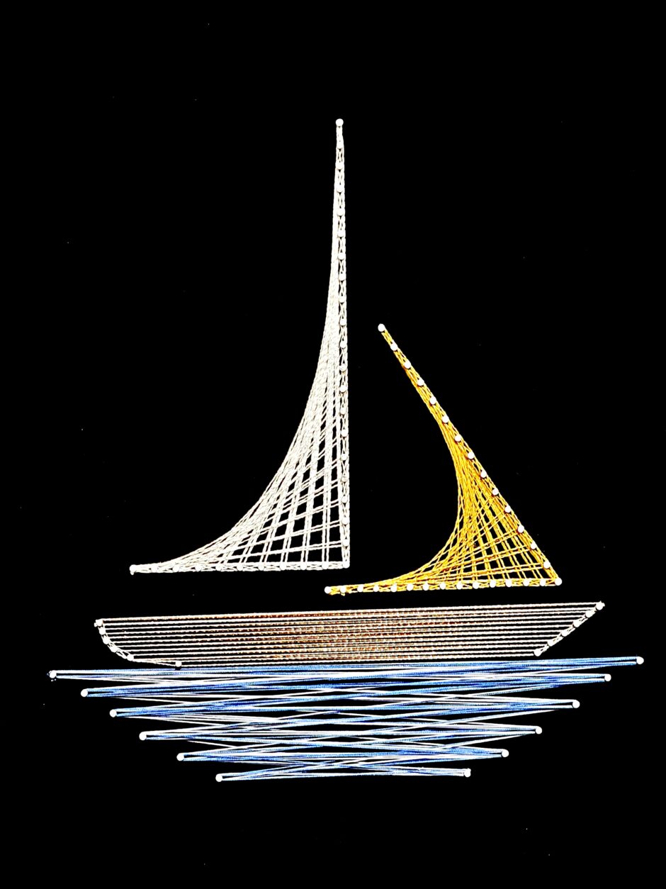 Στο string art (τέχνη του νήματος), η δυναμική της γραμμής αποτελεί το βασικό μορφοπλαστικό μέσο. Μέσα από την τοποθέτηση καρφιών σε επιφάνεια (συνήθως ξύλινη) και με τη μεθοδική διαδρομή του νήματος ανάμεσά τους, συγκροτούνται οπτικά πεδία όπου οι πολλαπλές στρώσεις νήματος δημιουργούν εντάσεις, πυκνότητες και ψευδαισθητικές αποτυπώσεις όγκου και κίνησης.