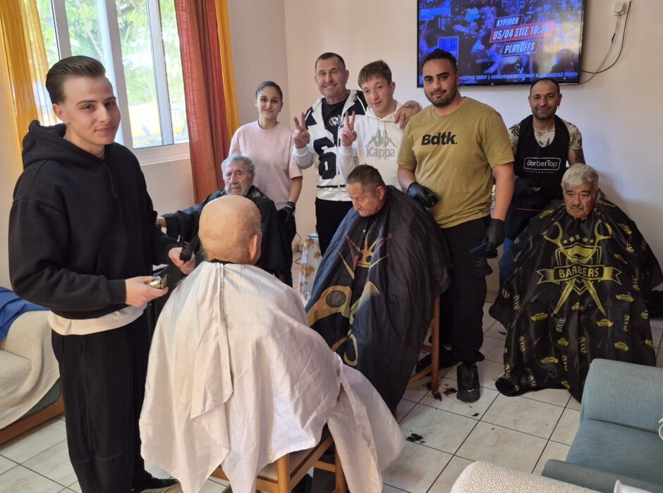 Την ίδια ώρα, ο ροτ. Μιχάλης Λιμπέρης, επαγγελματίας κομμωτής, με την ομάδα του MICHAIL LIMBERIS BARBER πρόσφερε περιποίηση και καλλωπισμό σε όσους το επιθυμούσαν. Μια απλή πράξη που όμως χάρισε αξιοπρέπεια, φρεσκάδα και μια αίσθηση ανανέωσης στους ανθρώπους του Γηροκομείου.