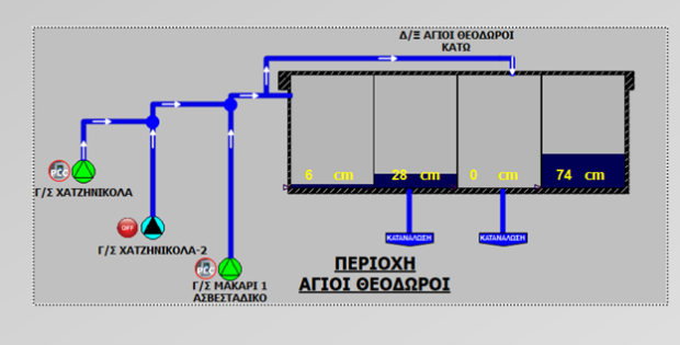 Χαρακτηριστικό είναι πως στην δεξαμενή των Αγίων Θεοδώρων, πριν την σημερινή εκκίνηση της λειτουργείας του νέου έργου, η στάθμη του νερού στις 8:45 ήταν μηδενική όπως εμφανίζεται στην παρακάτω φωτογραφία.