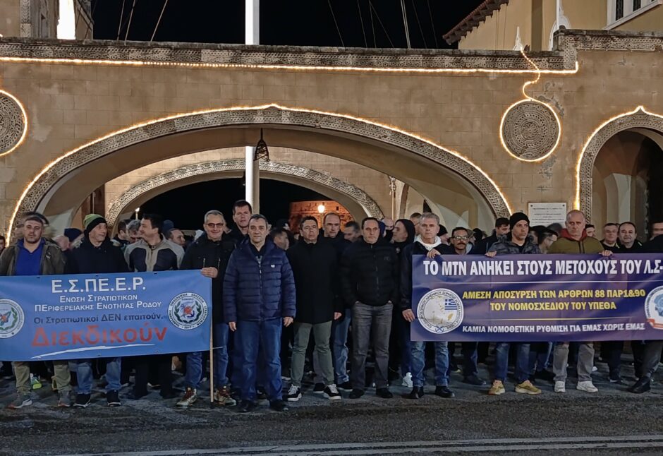 Η Ένωση Στρατιωτικών Περιφερειακής Ενότητας Ρόδου, την 08η Ιανουαρίου 2026 και ώρα 18:00, πραγματοποίησε έντονη διαμαρτυρία με αφορμή το πολυνομοσχέδιο του Υπουργείου Εθνικής Άμυνας.