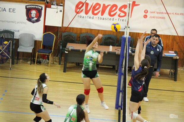 Το 5 στα 5 έκανε ο Α.Ο. Αθλοπαιδιών Κω κερδίζοντας εύκολα και με 3-0 σετ τον Γ.Σ. Διαγόρα, παραμένοντας χωρίς «παρέα» στο ρετιρέ του βαθμολογικού πίνακα. Η ομάδα του Αλκιβιάδη Χατζηνικολάου δεν συνάντησε δυσκολίες απέναντι στον «γηραιό», ο οποίος μετά τη νίκη στην πρεμιέρα, μετράει τρεις συνεχόμενες ήττες. Οι Κώοι πήραν εύκολα τα δύο πρώτα σετ (25-16 και 25-9) και λίγο πιο δύσκολα το 3ο (25-20), παίρνοντας τη νίκη και συνεχίζοντας την πορεία τους προς τον τίτλο.