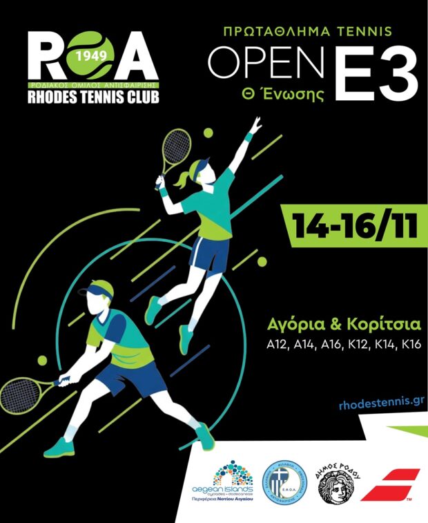 «Ο Ροδιακός Όμιλος Αντισφαίρισης φιλοξενεί από τις 14 έως τις 16 Νοεμβρίου το Πρωτάθλημα Τennis OPEN Ε3 Θ΄ Ένωσης, για αγόρια και κορίτσια ηλικιακών κατηγοριών κάτω των 12, 14 και 16 ετών.