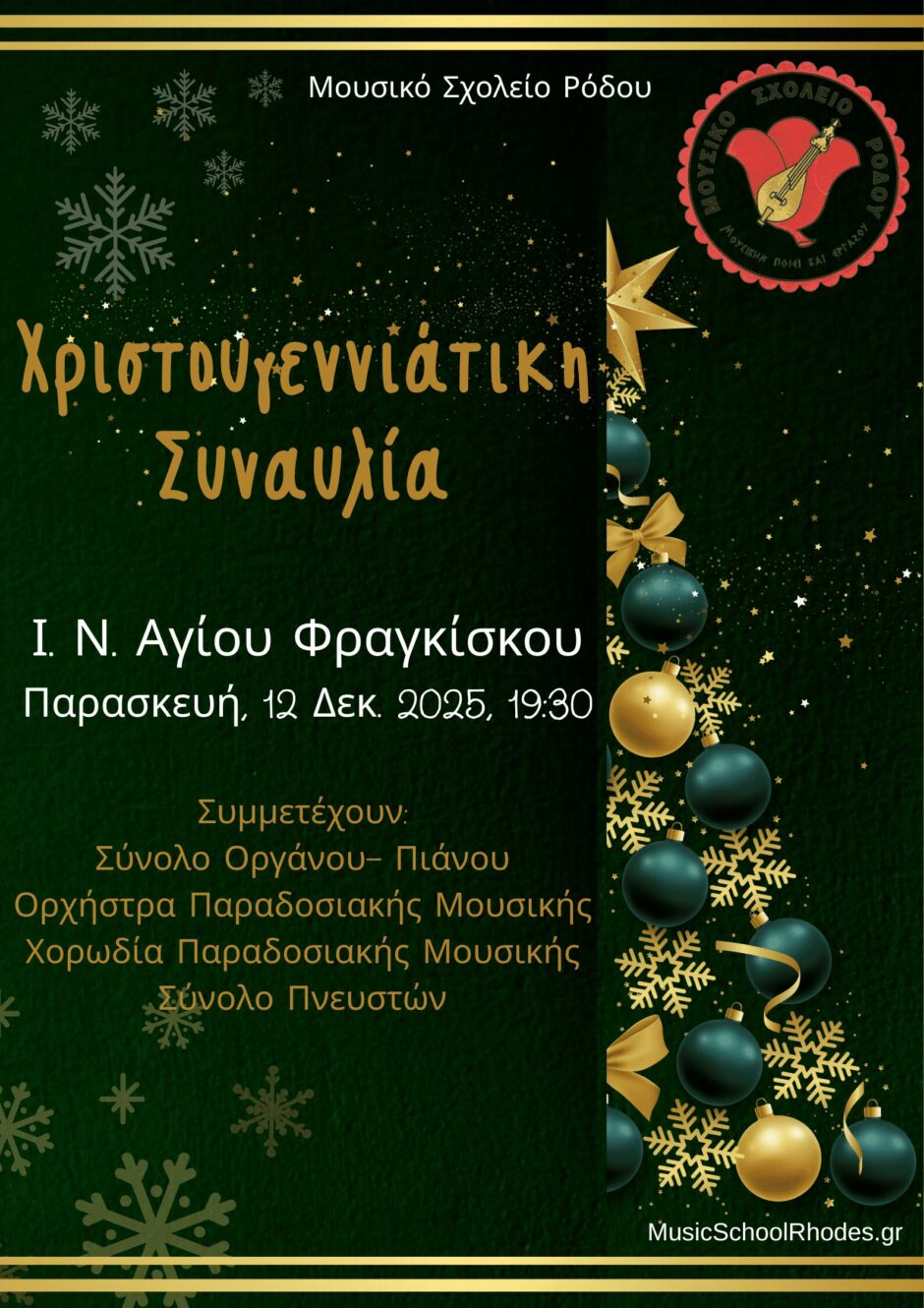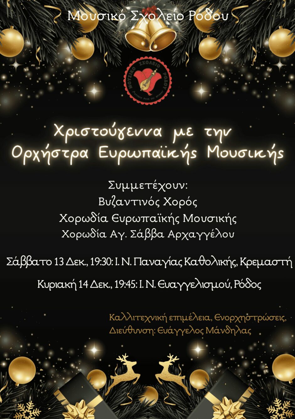 To Μουσικό Σχολείο Ρόδου, σας προσκαλεί στις παρακάτω συναυλίες και δράσεις, ενόψει των Χριστουγέννων: