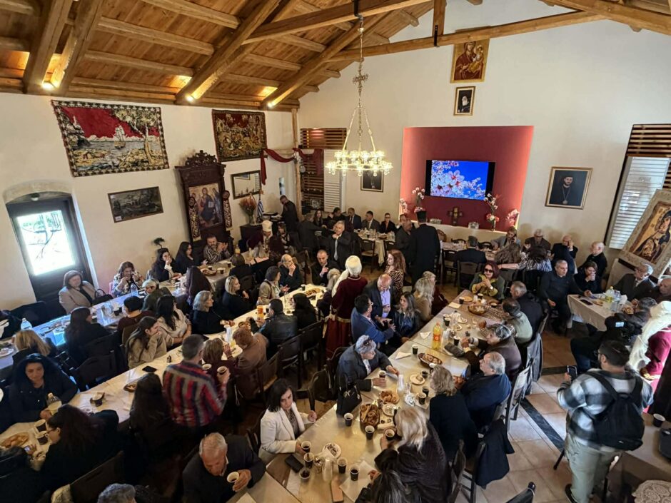 Μετά το πέρας των Ακολουθιών, η εκδήλωση συνεχίστηκε στο Πνευματικό Κέντρο του Ναού, όπου προσφέρθηκαν καφές και πλούσια εδέσματα σε όλους τους παρευρισκομένους/ες. Στο πλαίσιο του λαμπρού αυτού εορτασμού, ο Σύλλογός μας προχώρησε σε