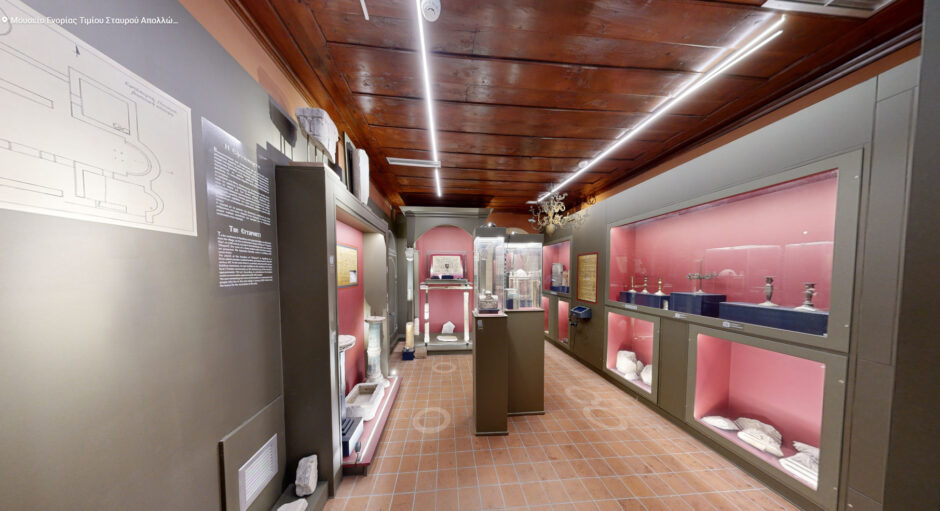 1. Η πρώτη ενότητα αφορά τον Σταυρό των Απολλώνων, σημαντικό κειμήλιο της Συλλογής. Καθώς ο Σταυρός παραμένει σε κρύπτη και εξέρχεται για προσκύνηση σε συγκεκριμένες εορτές κάθε χρόνο, η παρουσίαση του στον μουσειακό χώρο γίνεται εικονικά μέσω διαδραστικής προθήκης.