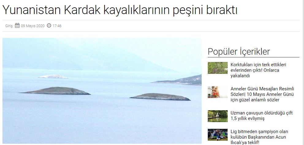 Στο δημοσίευμα, το οποίο αναπαρήχθη και από άλλα τουρκικά μέσα, αναφέρεται ότι οι ελληνικές αρχές σταμάτησαν να επισκέπτονται τις βραχονησίδες Ίμια.