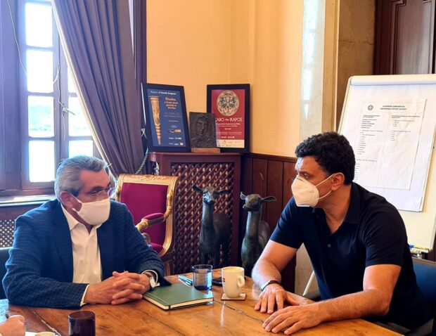 Ο Περιφερειάρχης ξενάγησε τον Υπουργό Υγείας στο μεγα-εμβολιαστικό κέντρο, η δημιουργία του οποίου ήταν πρόταση του ιδίου προς την κυβέρνηση, που έτυχε της αποδοχής του πρωθυπουργού και την άμεσης υλοποίησης μέσα από τη συνεργασία όλων των εμπλεκομένων φορέων, με στόχο να επισπευσθεί ο εμβολιασμός στο νησί της Ρόδου, ως το μεγαλύτερο νησί του Νοτίου Αιγαίου και εκ των κορυφαίων τουριστικών προορισμών της χώρας.