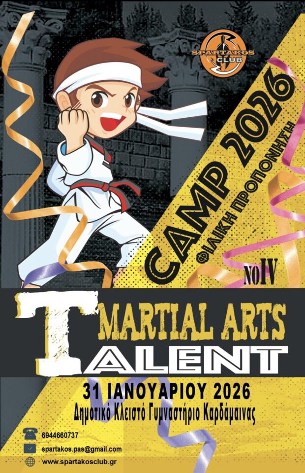 «Η αγωνιστική συνάντηση θα πραγματοποιηθεί τελικά το Σάββατο 31 Ιανουαρίου 2026. Σας ενημερώνουμε για τη συμμετοχή του συλλόγου μας στην αγωνιστική συνάντηση συλλόγων ταεκβοντό ‘’Martial Arts Talent IV’’, η οποία αποτελεί εξαιρετική αγωνιστική προετοιμασία για τα επερχόμενα πρωταθλήματα.