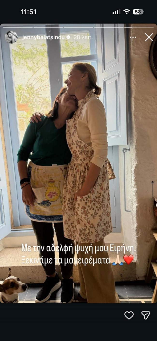 “Με την αδελφη ψυχή μου, Ειρήνη. Ξεκινάμε τα μαγειρέματα” έγραψε η Τζένη Μπαλατσινού.