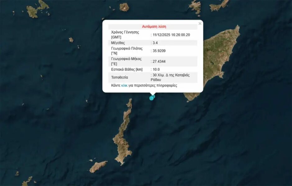 Δύο διαδοχικοί σεισμοί καταγράφηκαν το απόγευμα της Πέμπτης στην θαλάσσια περιοχή ανοιχτά της Ρόδου, προκαλώντας ανησυχία στους κατοίκους. Οι δονήσεις, αν και χρονικά πολύ κοντά η μία στην άλλη, παρουσίασαν σχεδόν ίδιο μέγεθος.