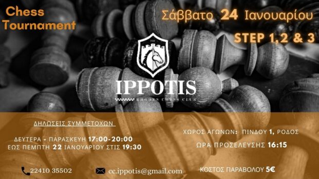 Δηλώσεις συμμετοχής πραγματοποιούνται: Δευτέρα έως Παρασκευή, 17:00–20:00, μέχρι Πέμπτη 22 Ιανουαρίου και ώρα 19:30, cc.ippotis@gmail.com, 22410 35502 ή μέσω της εφαρμογής my club.
