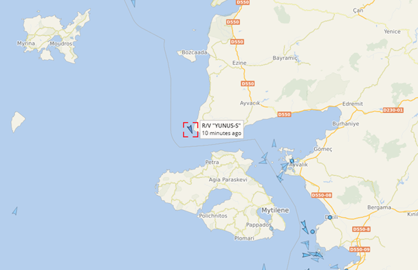 Το τουρκικό ερευνητικό YUNUS-S για το οποίο έχει εκδοθεί η NAVTEX 752/21 για διενέργεια ερευνών στη θαλάσσια περιοχή Νότια Καστελορίζου από 1-30 Σεπτεμβρίου, εξήλθε από τα Στενά των Δαρδανελίων και πλέει προς την περιοχή των ερευνών.