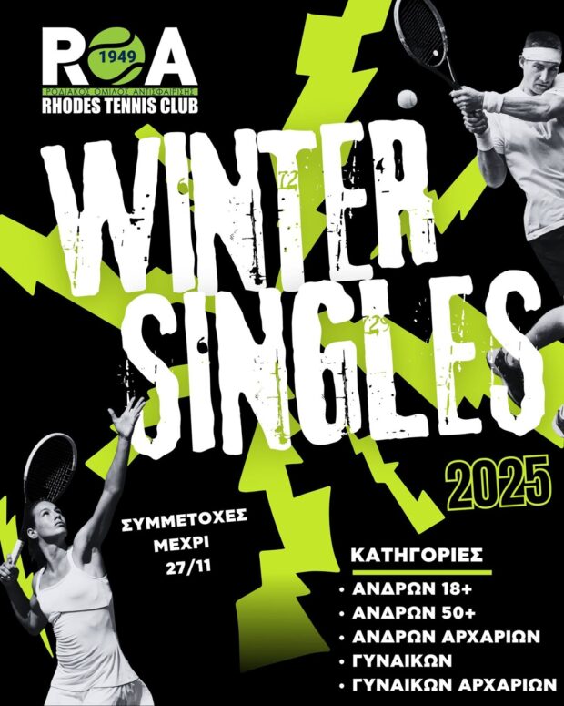 Όπως συμβαίνει στα τελευταία χρόνια, έτσι και φέτος ο Ροδιακός Όμιλος Αντισφαίρισης θα πραγματοποιήσει στις εγκαταστάσεις του το τουρνουά «Winter Singles».