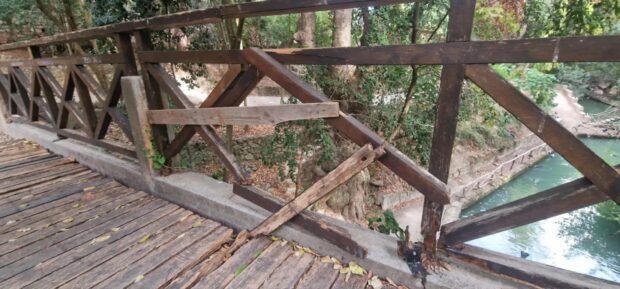 Στις φωτογραφίες που αποτύπωσε ο επικεφαλής της ελάσσονος μειοψηφίας του Δημοτικού Συμβουλίου Νίκος Γερονικόλας, καταγράφονται κατεστραμμένες ξύλινες κατασκευές, σπασμένα παγκάκια, κομμένα και αποξηραμένα δένδρα, ένα αμφιθέατρο κακοποιημένο, graffiti, τουαλέτες σε κατάσταση εγκατάλειψης, σκουριασμένα κάγκελα και σίδερα προστασίας. Τοιχία έχουν καταρρεύσει, ενώ σε πολλά σημεία σημειώνονται κατολισθήσεις πρανών. Ο περιμετρικός δρόμος που συνέδεε τη λεωφόρο Ρόδου–Λίνδου με τα Πευκάκια και το Ιταλικό Πάρκο έχει διαλυθεί.