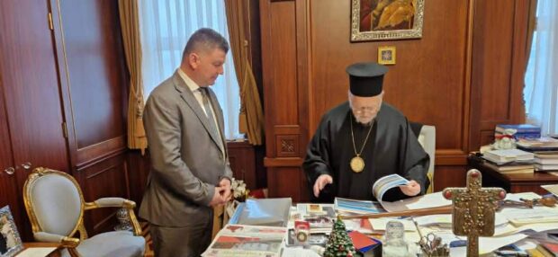 Με τον Οικουμενικό Πατριάρχη Βαρθολομαίο συναντήθηκε στο Φανάρι την Κυριακή 11 Ιανουαρίου ο δήμαρχος Πάτμου, Νικήτας Τσαμπαλάκης, παρουσία και του Μητροπολίτη Ζάμπιας και Μοζαμβίκης κ. Ιωάννη. Σύμφωνα με όσα δήλωσε ο κ. Τσαμπαλάκης στη «δ», ο Οικουμενικός Πατριάρχης είναι πολύ πιθανόν να επισκεφθεί το νησί της Αποκάλυψης τον προσεχή Σεπτέμβριο για να εγκαινιάσει την Πατμιάδα Εκκλησιαστική Σχολή.