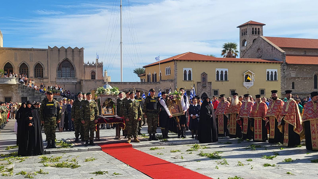 Εν συνεχεία έγινε αρτοκλασία στην είσοδο του Δημαρχείου Ρόδου παρουσία εκπροσώπων των τοπικών αρχών.