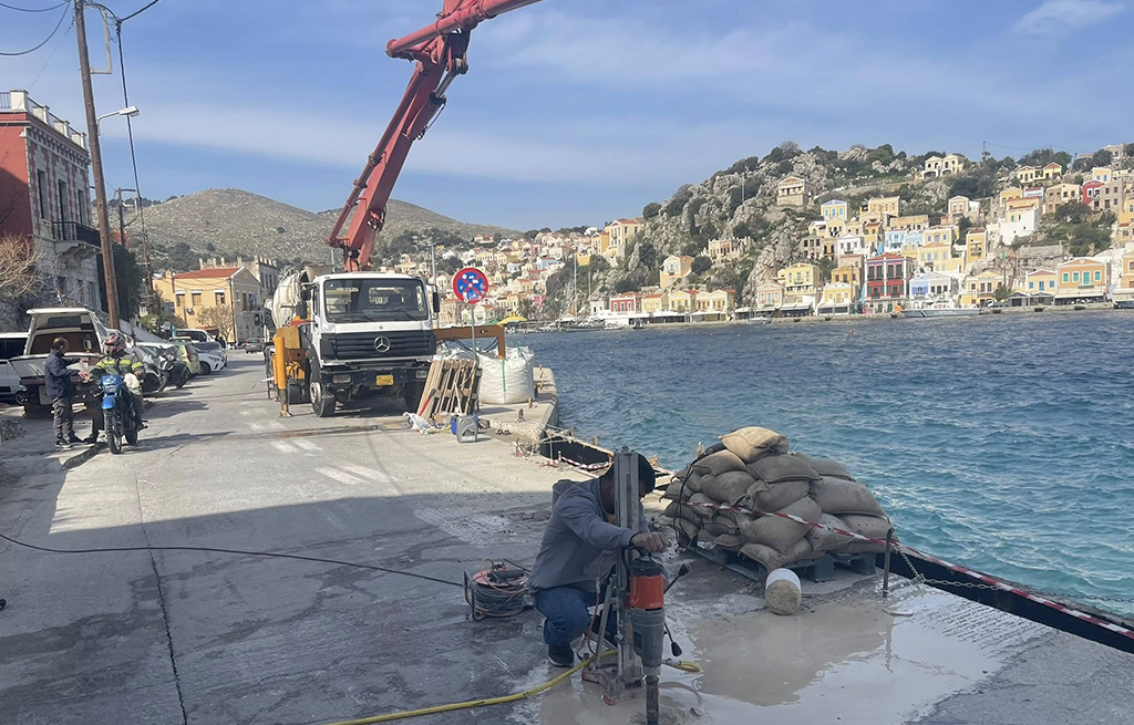 Ξεκίνησαν οι εργασίες αποκατάστασης των ζημιών στα κρηπιδώματα του Νοτίου Μετώπου του Λιμένα Σύμης