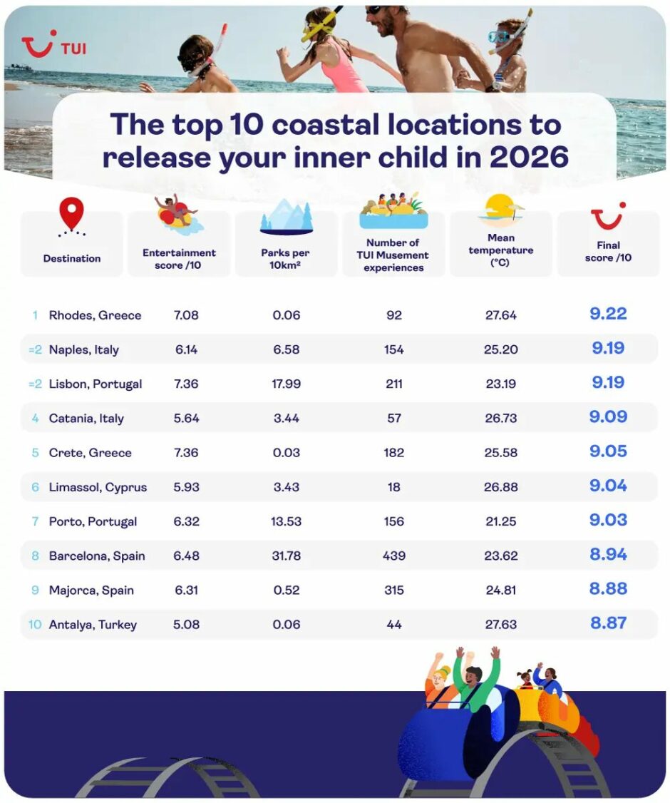 Ειδικότερα, η Ρόδος αναδεικνύεται στο no1 προορισμό για όσους θέλουν να ξαναγίνουν παιδιά και να ζήσουν και πάλι ένα από τα ανέμελα καλοκαίρια της παιδικής τους ηλικίας, συγκεντρώνοντας βαθμολογία, 9,22 στα 10.
