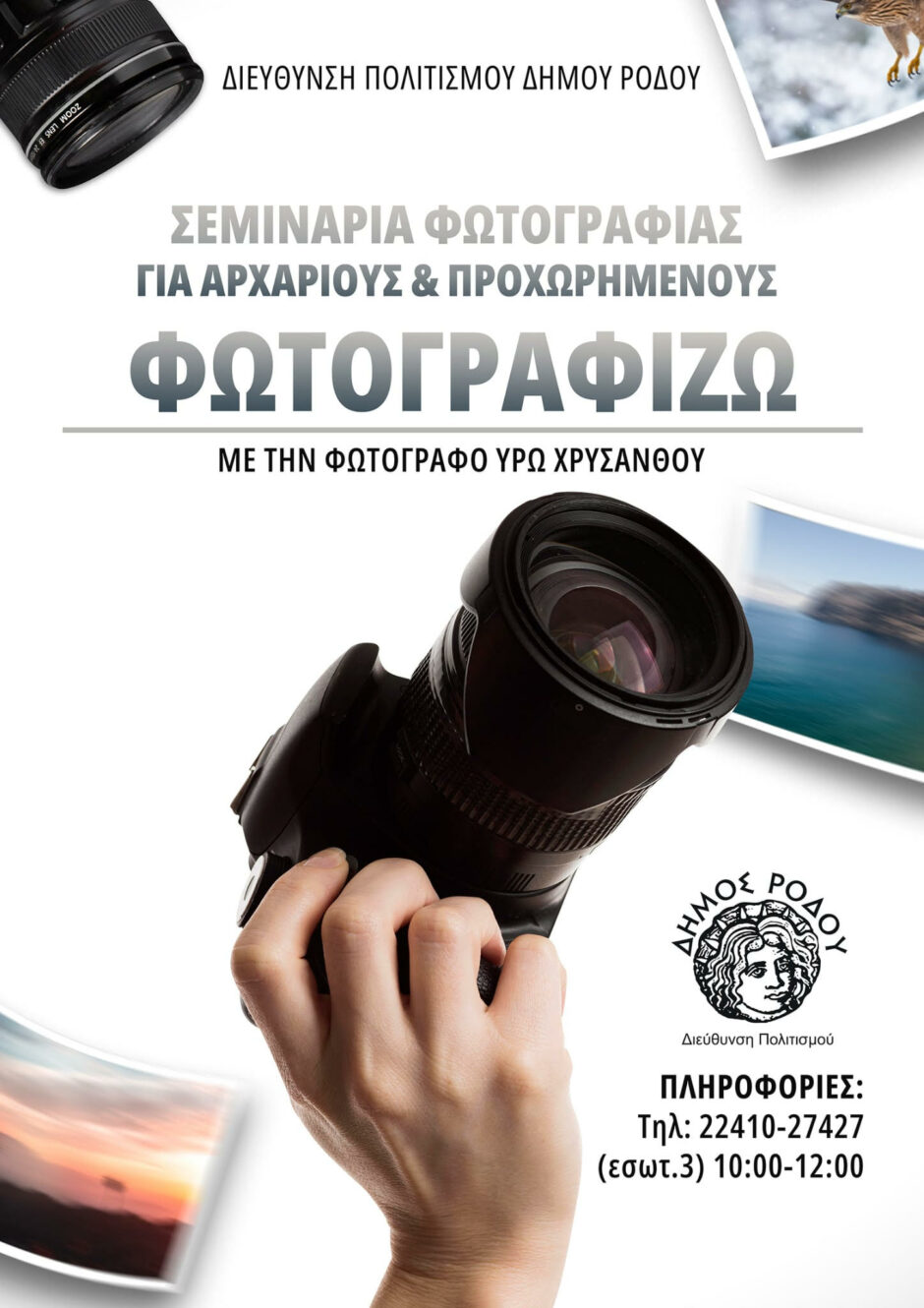 Η Διεύθυνση Πολιτισμού του Δήμου Ρόδου διοργανώνει Εργαστήρια Φωτογραφίας με εισηγήτρια την πτυχιούχο φωτογράφο Αργυρώ Χρυσάνθου.