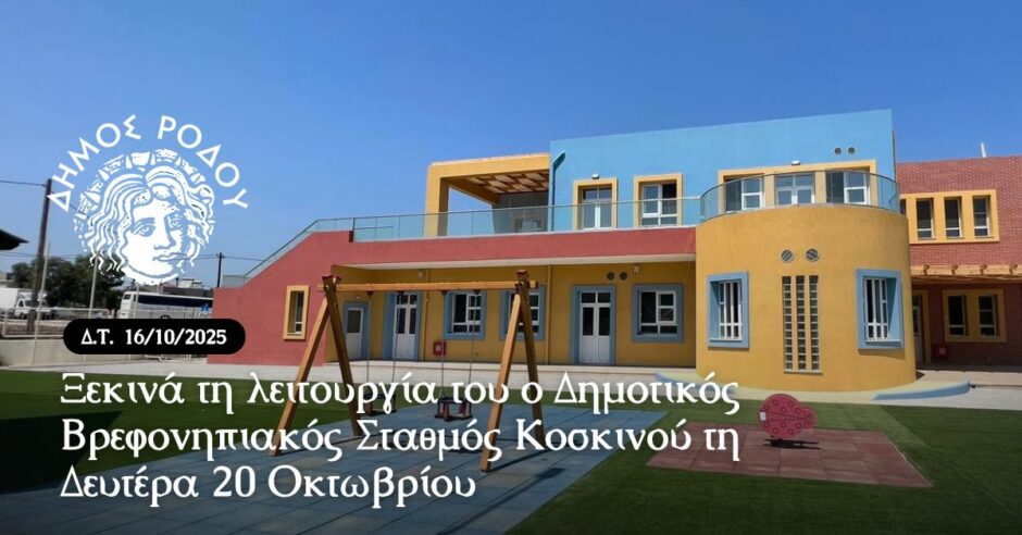Τη Δευτέρα 20 Οκτωβρίου θα ξεκινήσει τη λειτουργία του ο Δημοτικός Βρεφονηπιακός Σταθμός Κοσκινού, μετά την υπογραφή της άδειας ίδρυσης και λειτουργίας του από τον αντιδήμαρχο κοινωνικής πολιτικής, αλληλεγγύης και ισότητας δήμου Ρόδου, Θωμά Σωτρίλλη.
