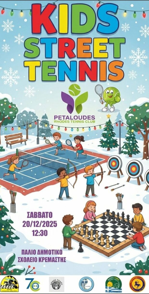 «Ο Όμιλος Αντισφαίρισης Πεταλούδων σε συνεργασία με τον Ροδιακό Όμιλο Αντισφαίρισης, την Rhodes Tennis Academy, τον σύλλογο τοξοβολίας Κένταυρος και τον Σκακιστικό Όμιλο Ρόδου Ιππότης, σας προσκαλούν στη Χριστουγεννιάτικη δράση, όπου το παιχνίδι συναντά τη γιορτινή μαγεία.